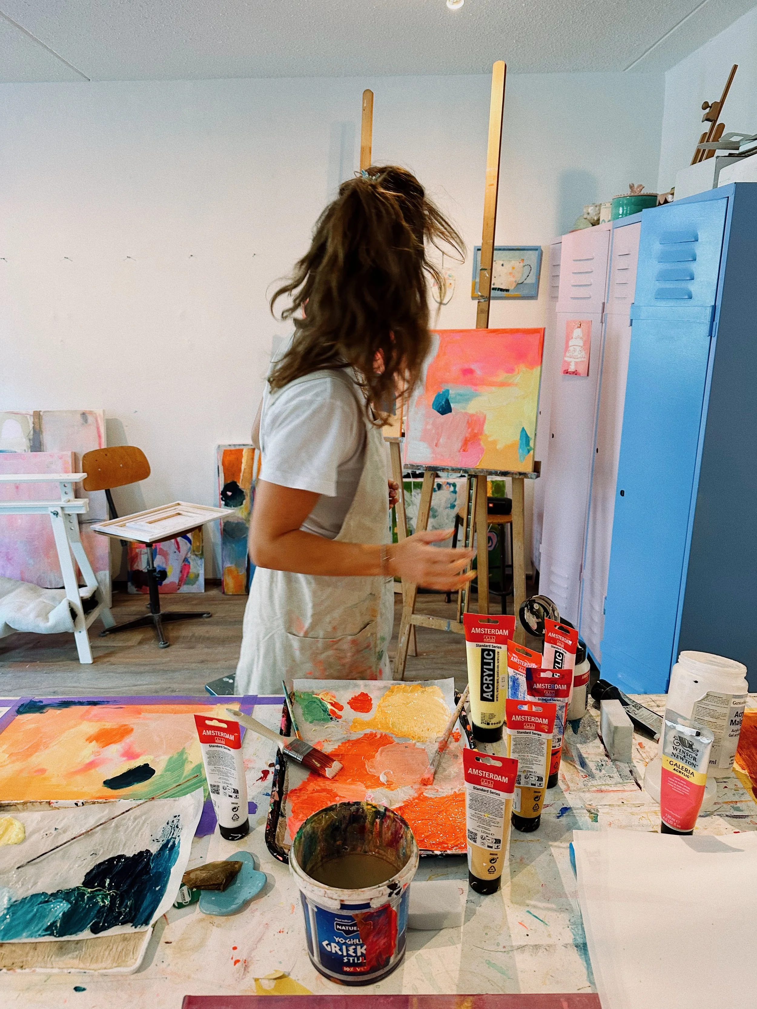 In het atelier mag alles, het gaat niet over presteren, maar over spelen.